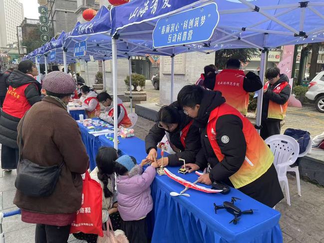 数学与信息工程学院展示两项特色项目。其中数学与信息工程学院的“暖翼天使路,心连‘星’同行志愿服务项目”,通过设置“心语星愿”互动墙、引导参与者制作星星主题手工艺品、开展孤独症科普宣传等方式,为“星星的孩子”汇聚社会关爱,吸引众多市民互动留言;“春雨润心 科创筑梦”互动科普营项目,以飞行器表演、科学实验和创意绘画为亮点,让青少年在动手实践中感受科技魅力。