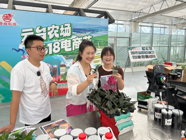 直播助农是本次活动的亮点环节。在精心布置的直播间里,“数乡智创”团队的党员、团员们化身“新农人主播”,分工协作,配合默契。镜头前,主播们或手捧盛开的粉色蝴蝶兰,近距离展示其优雅纹理;或举起根系发达、茎秆粗壮的优选幼苗,讲解种植要点。他们充分发挥大学生视角和年轻化表达优势,生动分享“从田间地头到电商平台”的实践体验,有效拉近了“云台农庄”品牌与年轻消费群体的距离,显著提升了直播间观众的停留时长,成功塑造了品牌“生态、科技、活力”的形象。据统计,当天直播3个半小时,点赞量达20万+,观看人数1.5万+,成交件数1621件,订单覆盖全国20余个省市,直播间一度飙升至花卉绿植榜第7名。