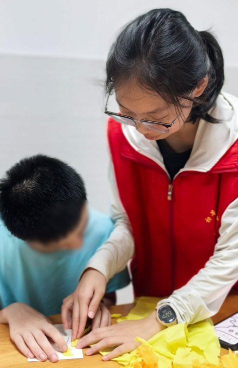 此次志愿服务活动,不仅让特殊儿童在动手实践中感受到创作的乐趣,更让他们在制作和平鸽的过程中,悄悄种下“铭记历史、珍爱和平”的种子。志愿者们则用爱心与陪伴,让抗战精神通过“爱心传递”变得可触可感。学院将持续开展特殊儿童志愿服务活动,让关爱与红色教育同行,以实际行动传承红色精神,为特殊儿童的成长注入温暖和力量。(通讯员 沈怿泽)