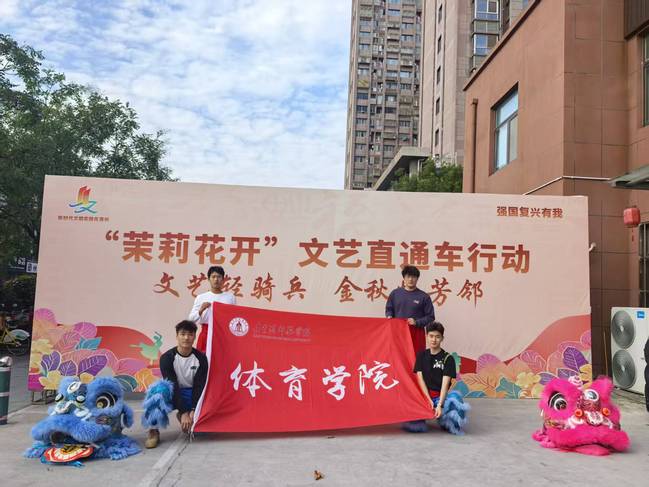 近日,体育学院学子受邀参与“茉莉花开”文艺直通车社区专场演出,先后走进东望、云海、九龙、海宁四个社区,以刚劲有力的表演为基层群众送上文化盛宴,让传统民俗文化在社区落地生根。